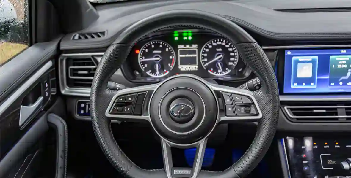 К эргономике у DFSK ix7 по большому счету не придраться. Например, модное мультифункциональное рулевое колесо настраивается в обеих плоскостях. Водительское сиденье имеет аж 12 электрорегулировок с памятью (включая поясничный подпор), пассажирскому сиденью выделено четыре электрорегулировки. Причем сиденья еще и удачно сконфигурированы, в них уютно.