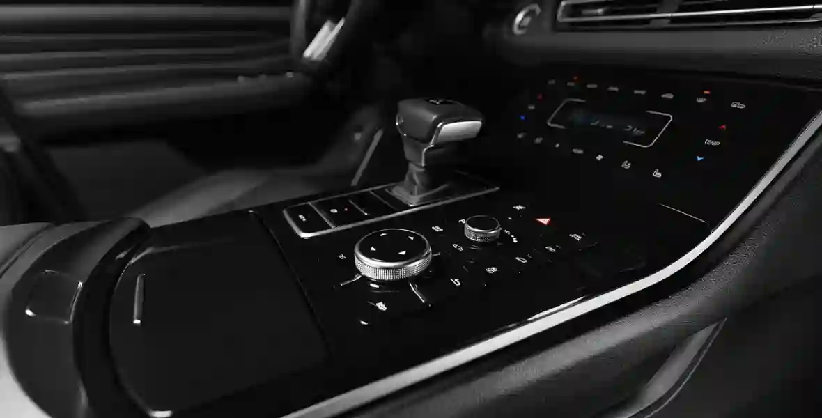 Центральная консоль кроссовера DFSK ix7 теперь имеет более удобное расположение элементов управления: контроллер мультимедийной системы и селектор КПП, при этом сохранены физические кнопки управления системами полного привода. Механический селектор управления коробкой передач был заменен на электронный, с новым дизайном, сохранившим удобство использования. Новый селектор обшит кожей NAPPA, а пластиковые элементы селектора получили функциональное матовое покрытие.